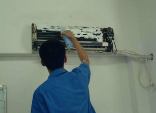 | 兴和空调维修师傅给兴和用户上门维修清洗空调。 |